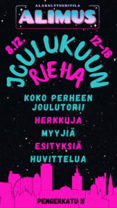 Alakulttuuritila Alimuksella järjestetään koko perheelle suunnattu Joulukuun rieha 8.12. klo 12-18.